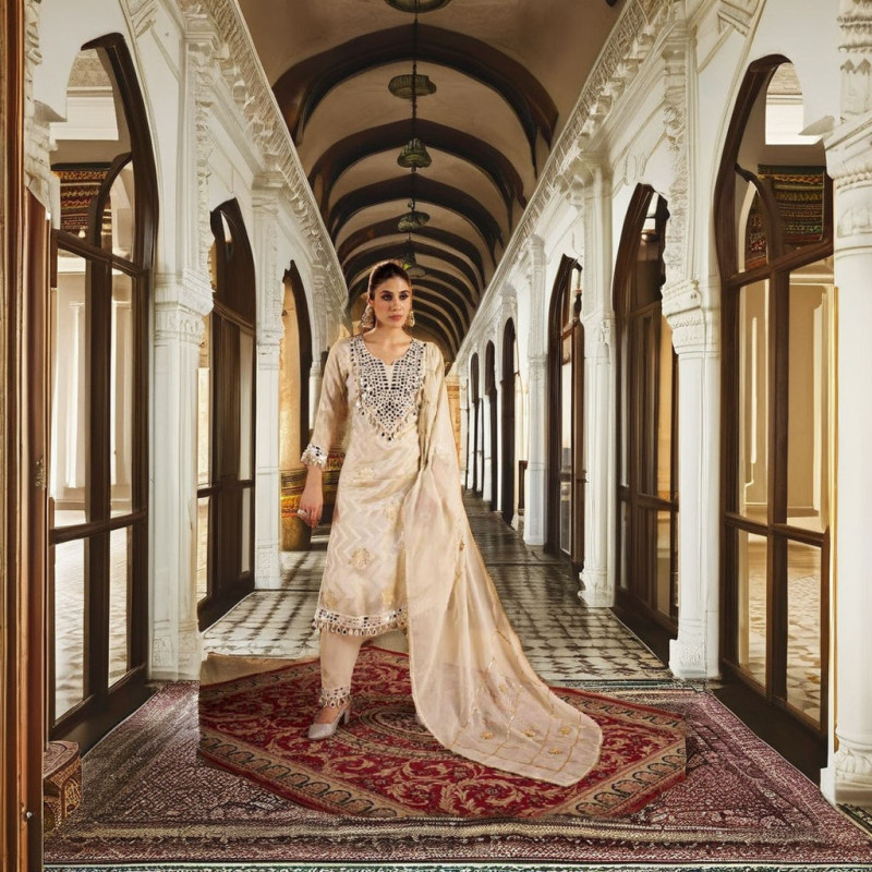Viscose Shimmer Jacquard Neck Dress from We Neeta Creation is available for wholesale orders. Designed with premium viscose shimmer fabric and jacquard neck detailing, this dress is perfect for festive and party wear. Retailers and wholesalers benefit from its stylish appeal and affordable bulk pricing. With consistent customer demand, it ensures quick-moving stock and profitable returns, making it an essential addition to ethnic and modern fashion outlets.
